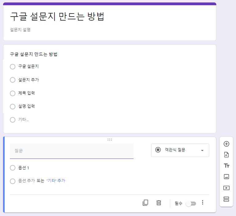 그럼 바로 설문지를 만들 수 있는 화면이 나옵니다.