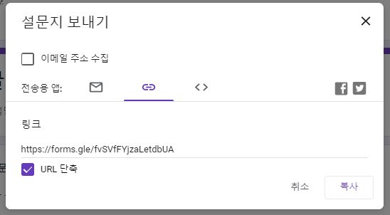 설문지 링크가 너무 길 경우 URL 단축을 눌러 단축시킬 수도 있습니다.