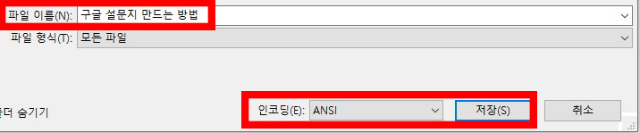 그리고 인코딩을 ANSI로 바꿔주셔야 합니다.