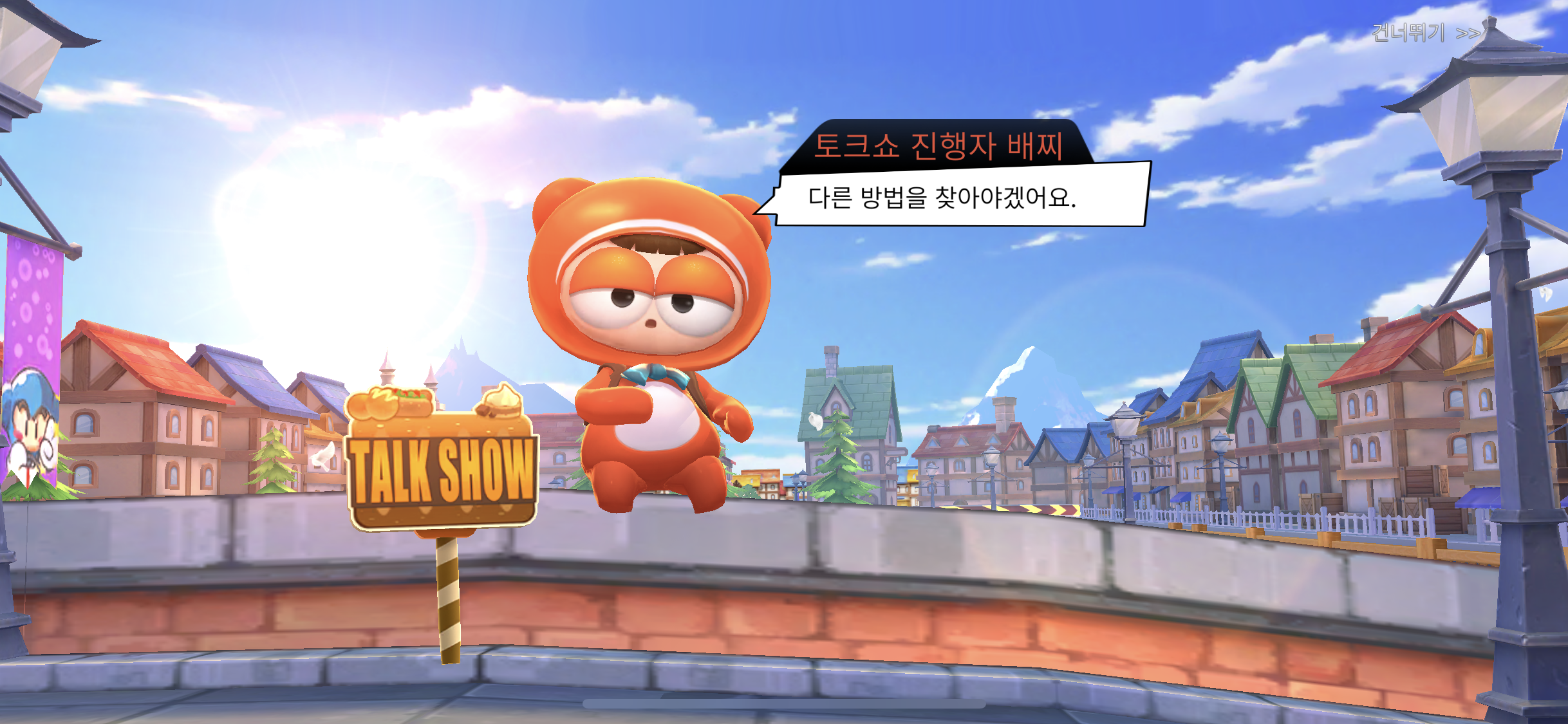 처음엔 스토리 같은 것들이 나옵니다. 그냥 스킵하셔도 돼요. 애들이 귀엽긴 귀여워요.