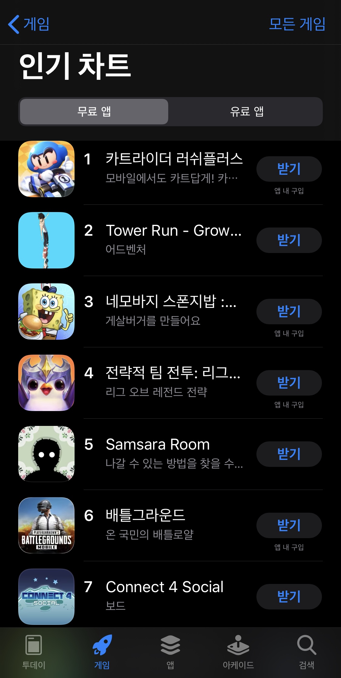 화제의 게임답게 앱스토어 무료 게임 순위 1등입니다. 안드로이드에서 1등이라고 해요.