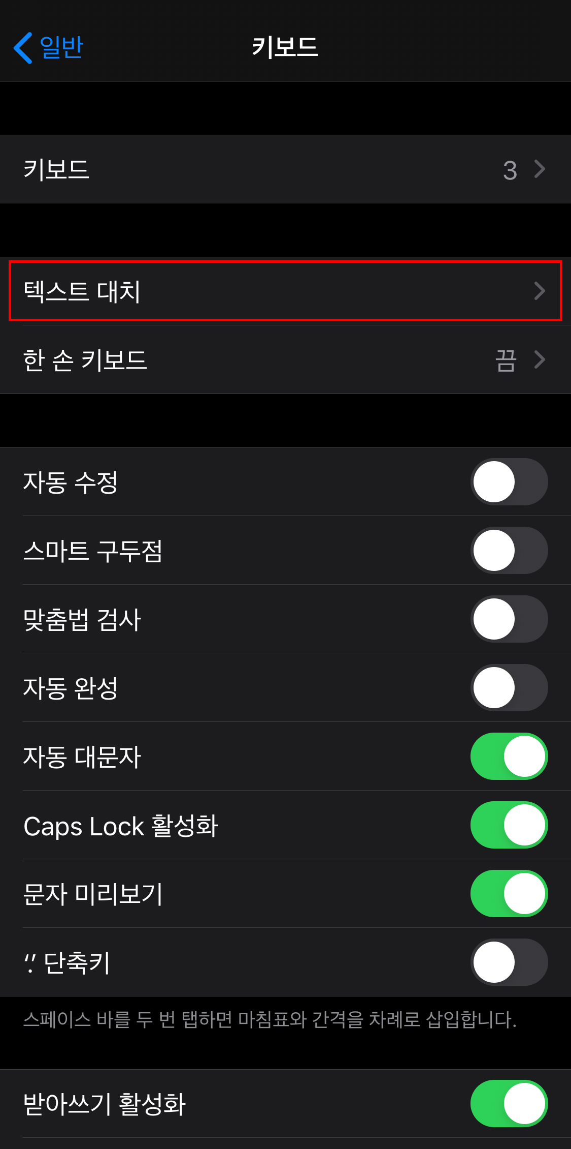 텍스트 대치는 자주 사용하는 말, 기호, 이모티콘 등을 등록하여 단축키만으로 쉽게 문구가 써지는 것입니다.
