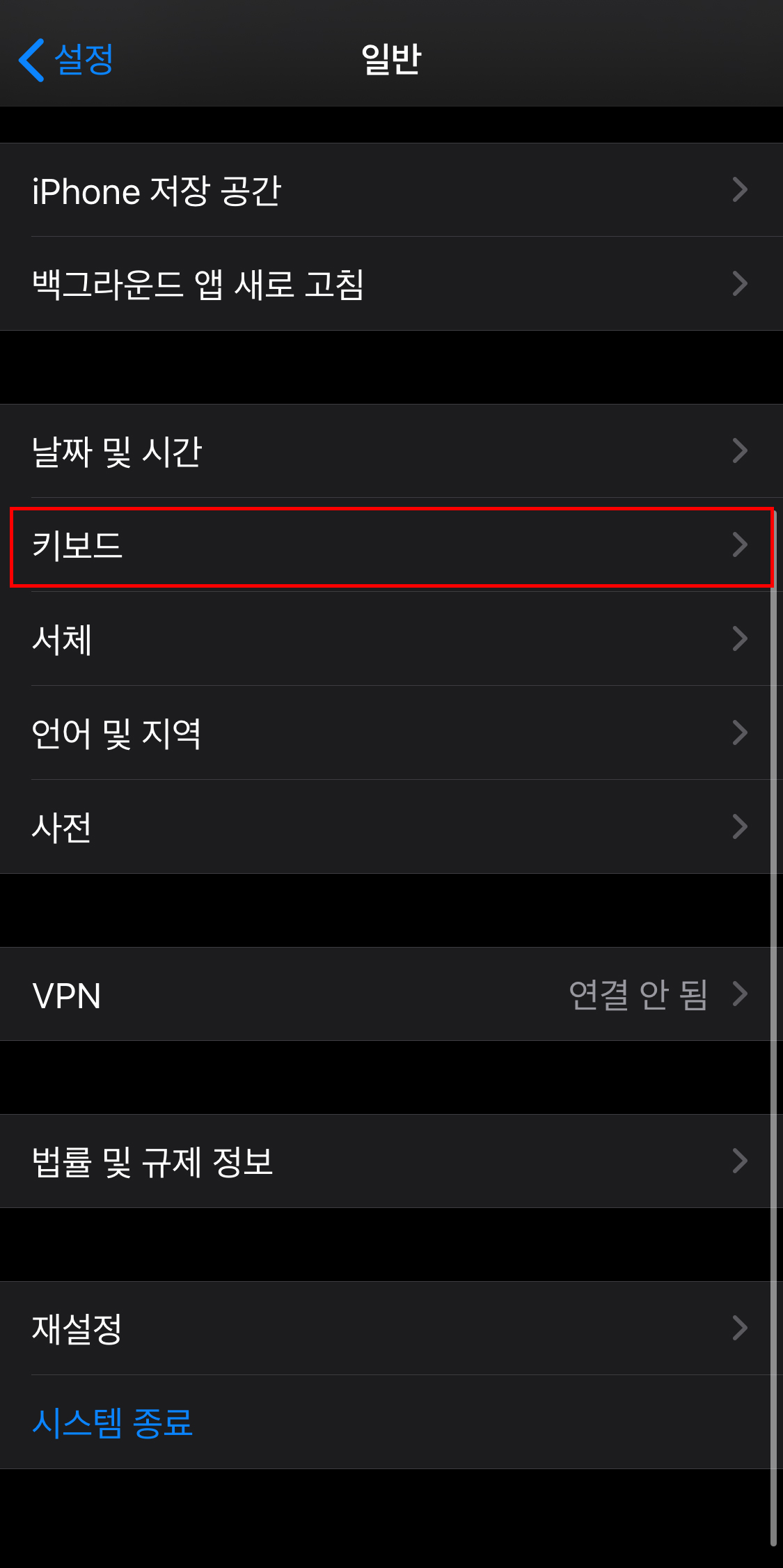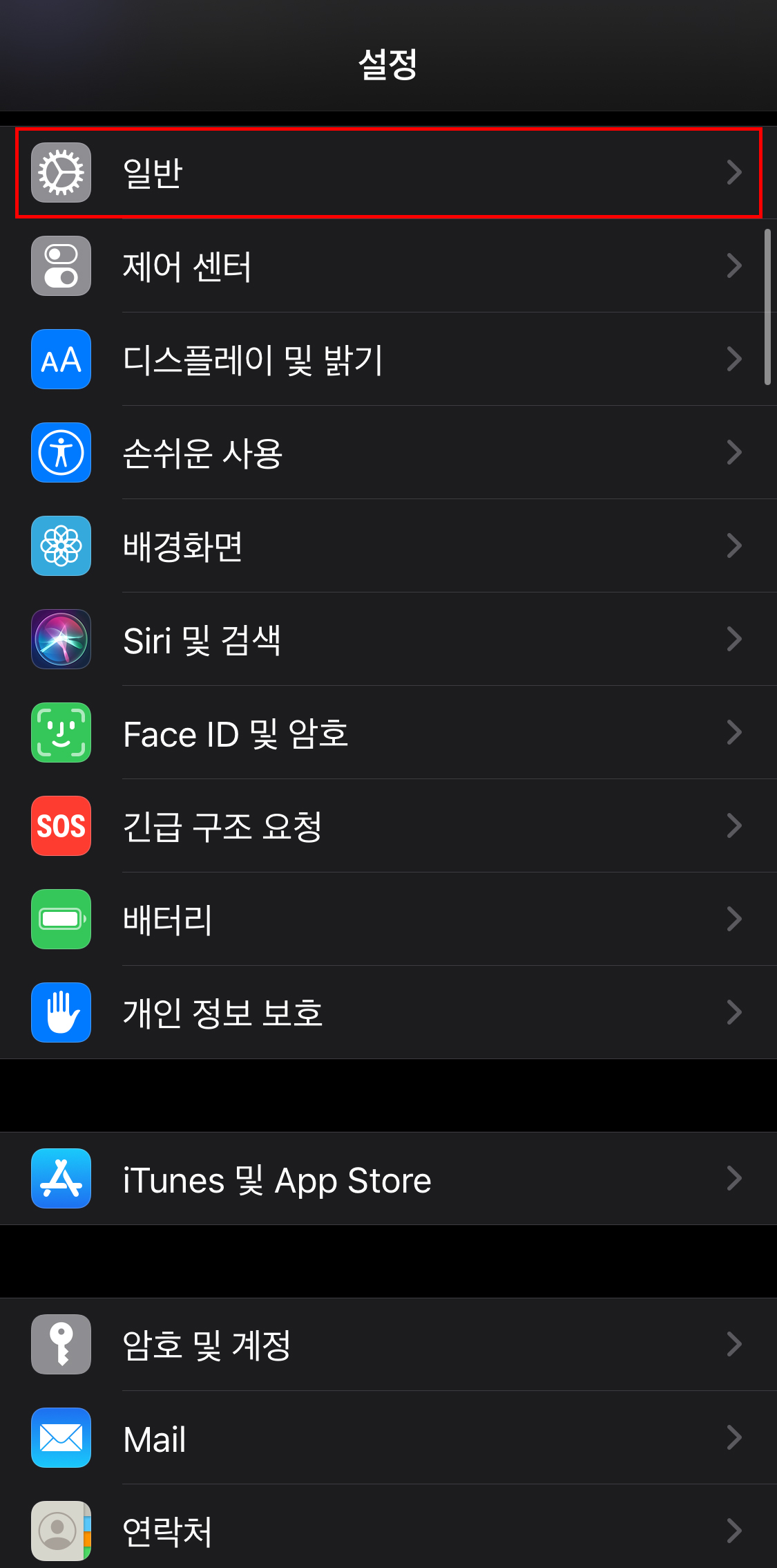 아이폰에서 환경설정 -> 일반을 눌러주세요.