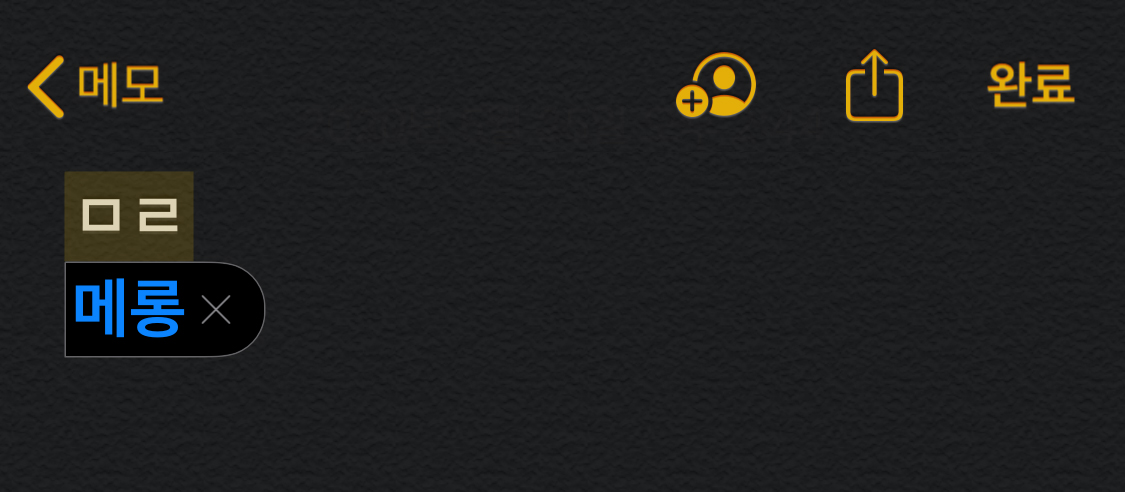 메모장에 ㅁㄹ이라고 썼습니다. 그랬더니 아래에 메롱이라고 나와요. 여기서 엔터를 치거나 글을 계속 쓰면 자동으로 메롱이라고 써집니다.