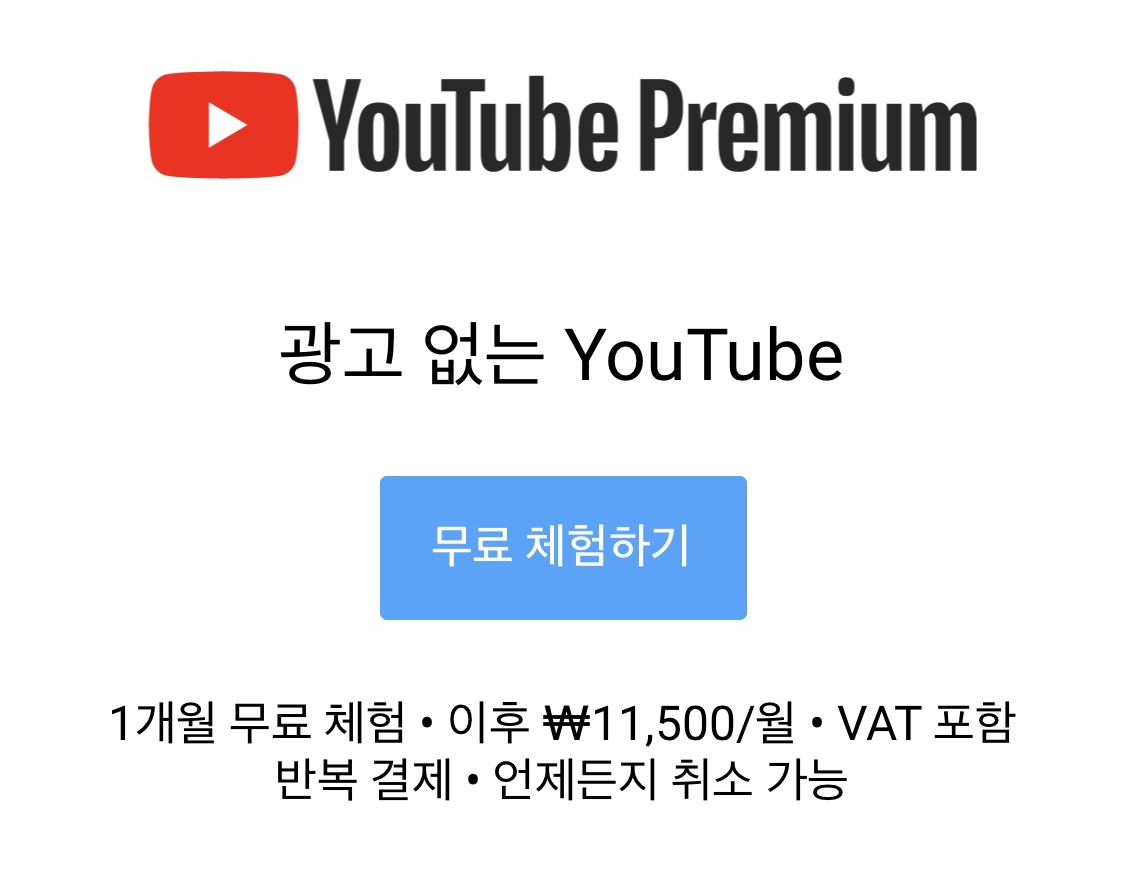 유튜브를 원래 잘 안 봤는데 공부해야 할 것이 있어서 보다 보니 계속 보게 되더라고요. 그러다 보니 나오는 광고들이 너무 귀찮고.... 물론 네이버 TV 15초 광고보다는 훨씬 낫긴 하지만 광고를 보고 싶지 않아서 유튜브 프리미엄을 신청하게 되었습니다.