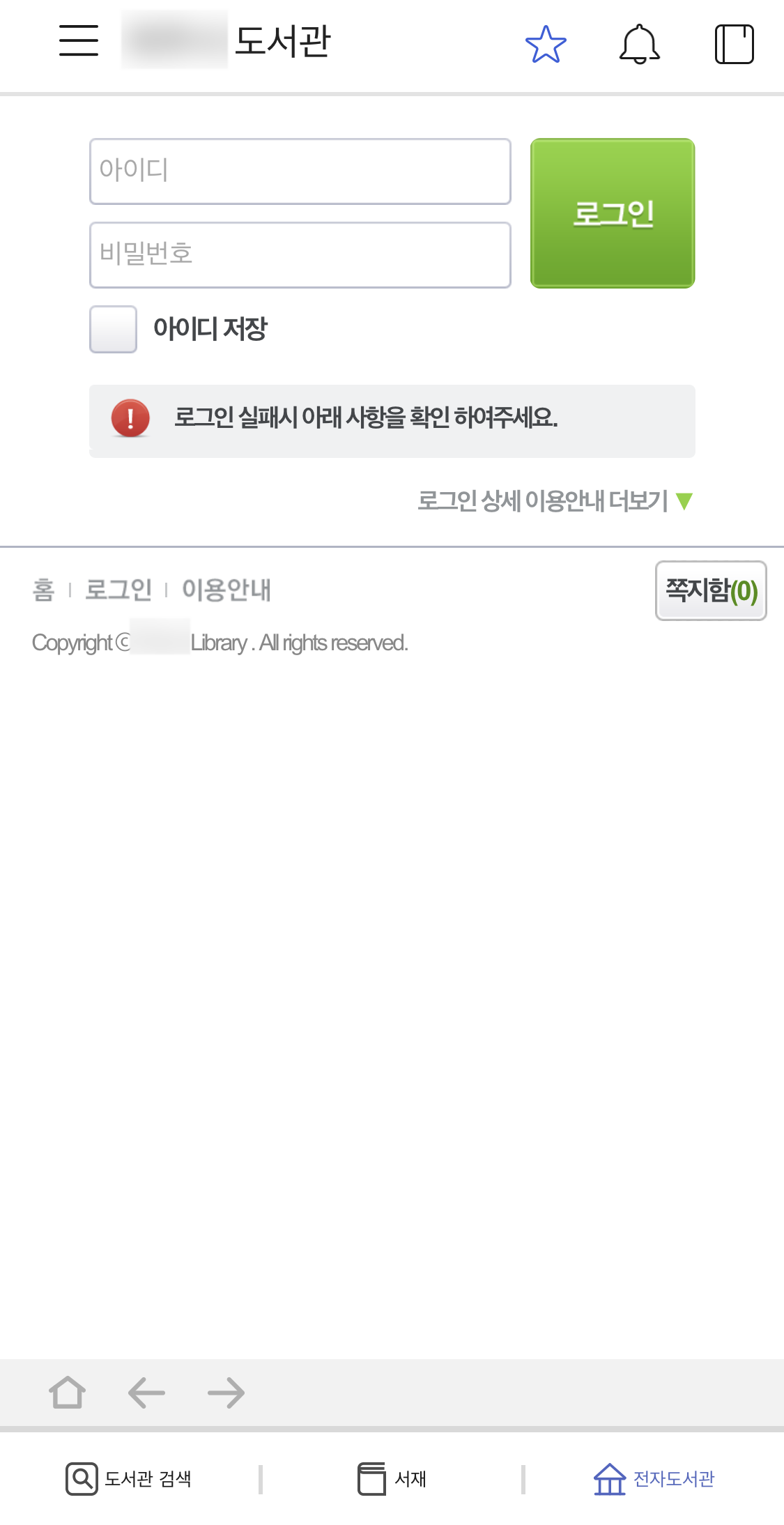 교보문고 로그인이 아닌 해당 지역 도서관 로그인입니다.