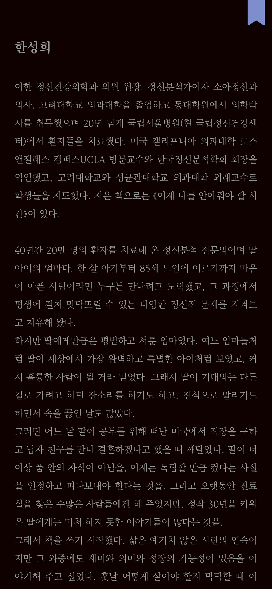 책갈피는 오른쪽 위에 책갈피 모양 아이콘을 눌러주면 파란색으로 책갈피가 되었다는 표시가 나옵니다.