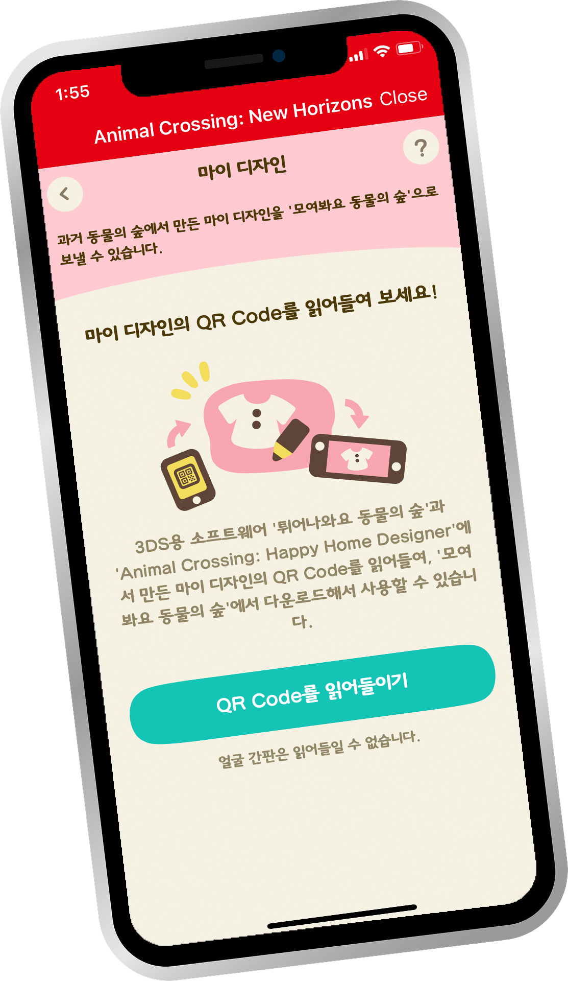 모여봐요 동물의숲 마이디자인 QR코드 스캔 사용 방법