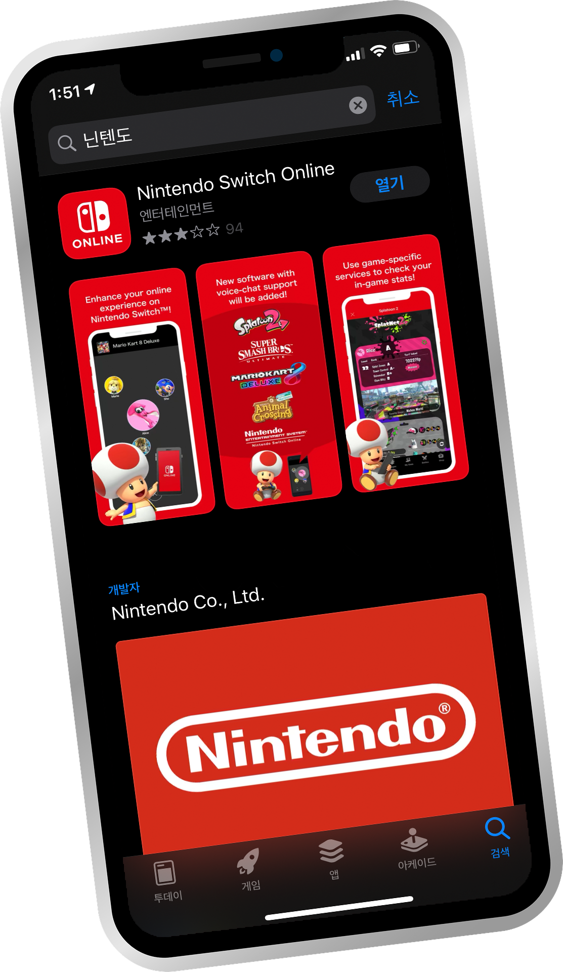 1. 닌텐도 스위치 온라인 어플을 다운 받아 주세요. 닌텐도라고 검색을 해도 바로 나옵니다.