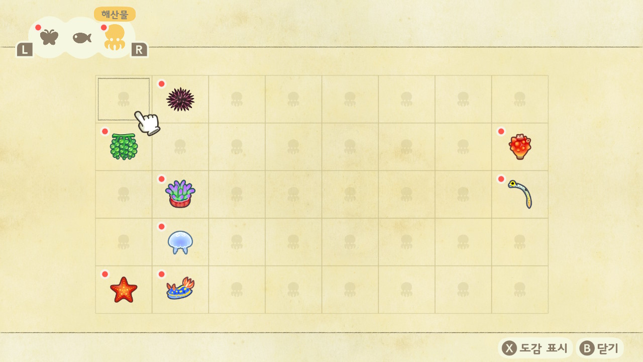 도감에 해산물 도감도 추가되었습니다. 아직은 40종류밖에 없네요.
