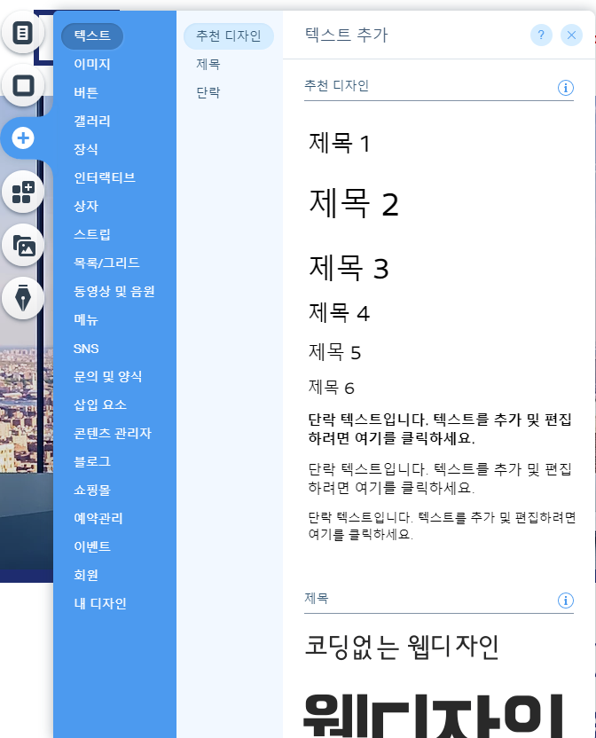 홈페이지 만들 때 스티커처럼 원하는 기능을 원하는 곳에 갖다 붙일 수 있습니다.