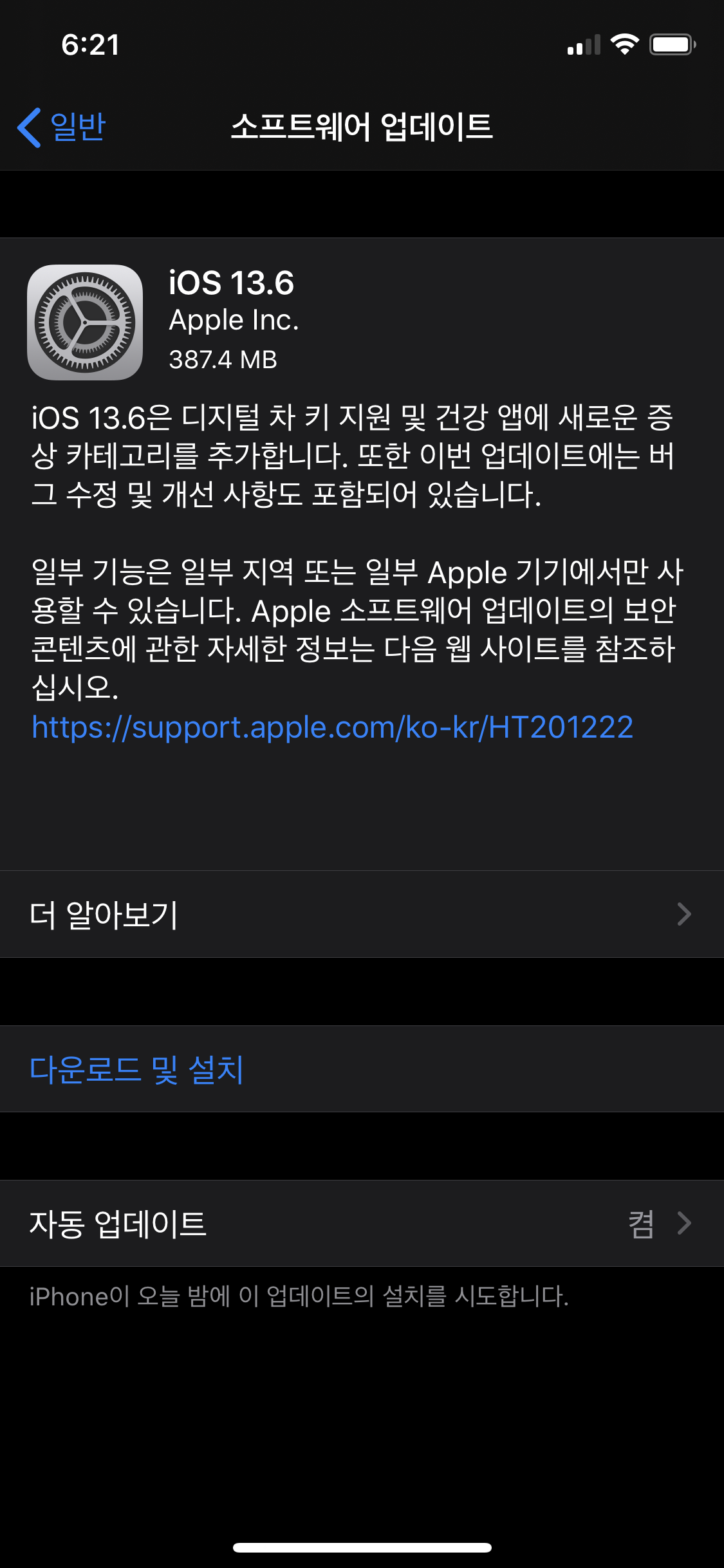 저는 현재 아이폰 13.6을 쓰고 있는데요 13.5 버전부터 나온 것으로 보입니다.
