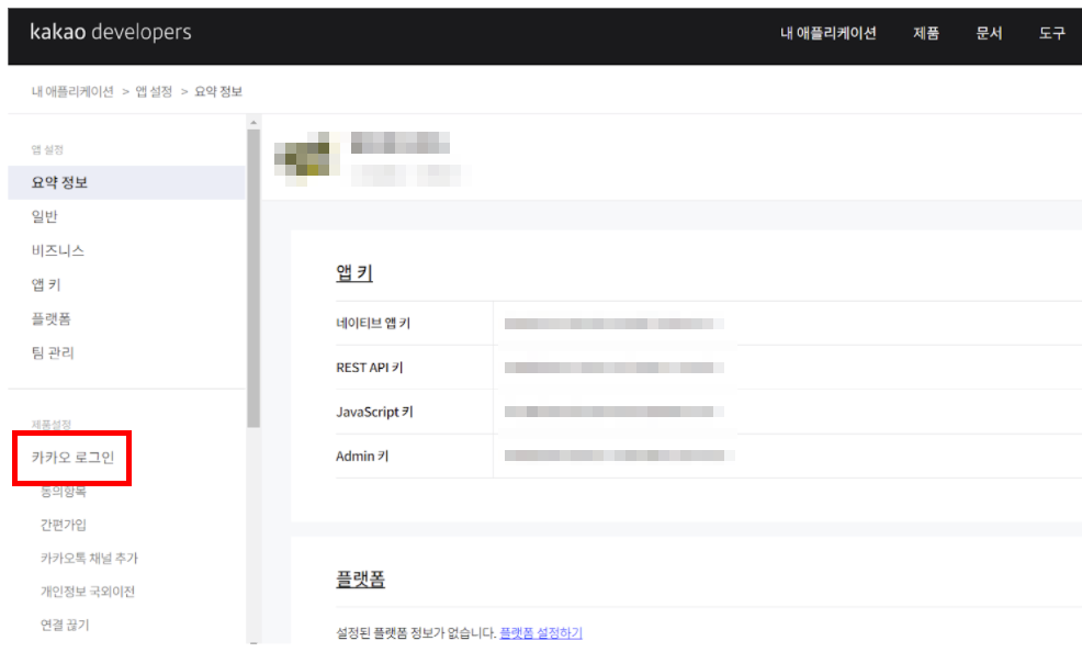 그다음은 왼쪽 메뉴에서 [카카오 로그인] 메뉴를 클릭해주세요.