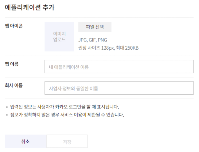 앱 아이콘 이미지 사이즈에 맞게 만드셔서 업로드 해주시고, 앱 이름, 회사 이름에는 회사 이름 또는 사이트 이름을 적어주시면 됩니다.