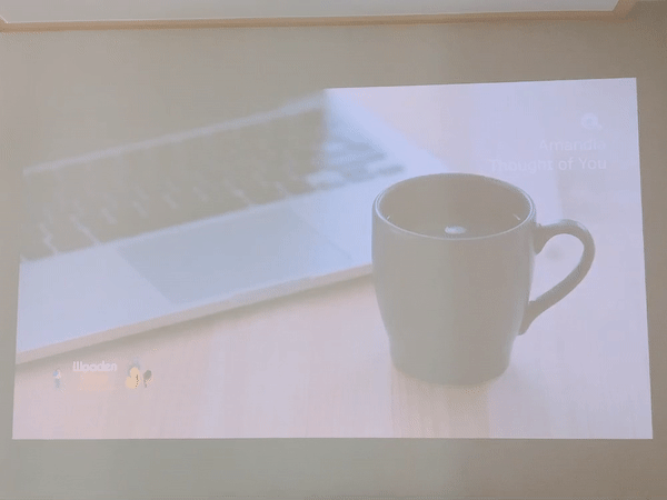 저의 방 한쪽 면입니다. 처음부터 빔프로젝트를 쏘려고 아무것도 없이 비워둔 벽이에요. 색깔이 하얗진 않고 약간 회색+아이보리색 섞인 색으로 자잘한 체크 같은 것이 있어요. 그래도 매우 잘 보입니다. 굳이 흰색 스크린이나 벽면이 없어도 될 거 같아요.