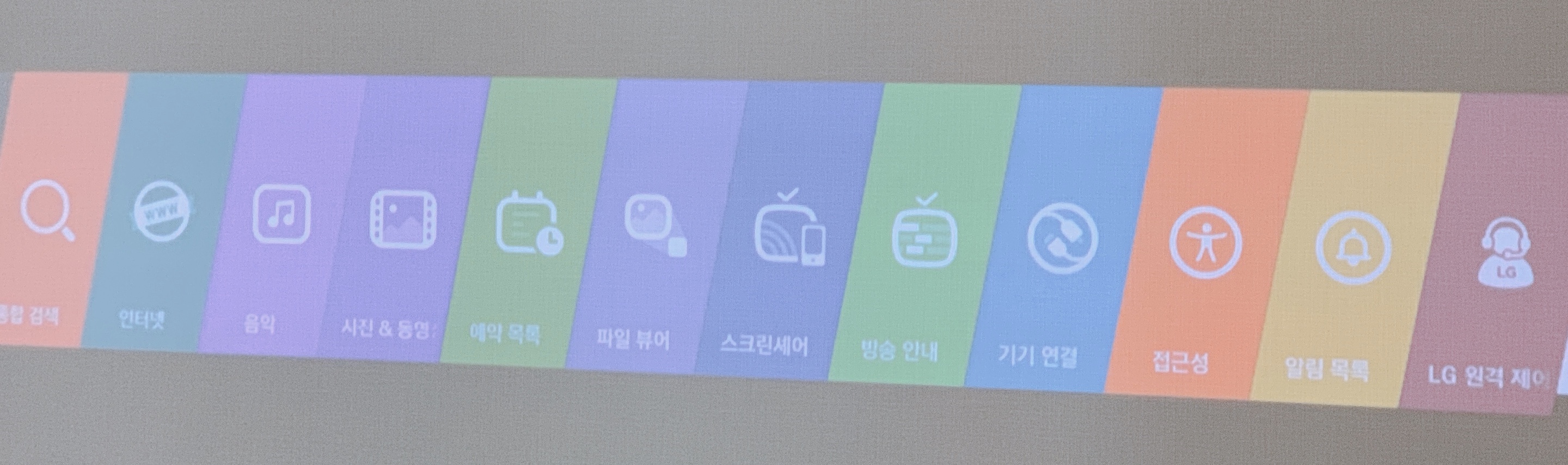 LG 시네빔 빔프로젝터 PF50KA는 다양한 메뉴들을 지원하고 있습니다. 저는 빔프로젝트는 유튜브나 넷플릭스 정도만 되면 좋다고 생각했는데 이렇게 많은 것들이 지원되는지 처음 알았어요.
