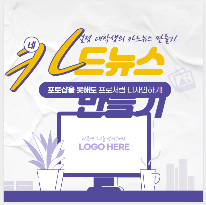 카드뉴스 템플릿 보면 아래에 로고를 넣으라는 문구가 보입니다. 로고가 따로 없으니 이미지를 하나 넣을게요.